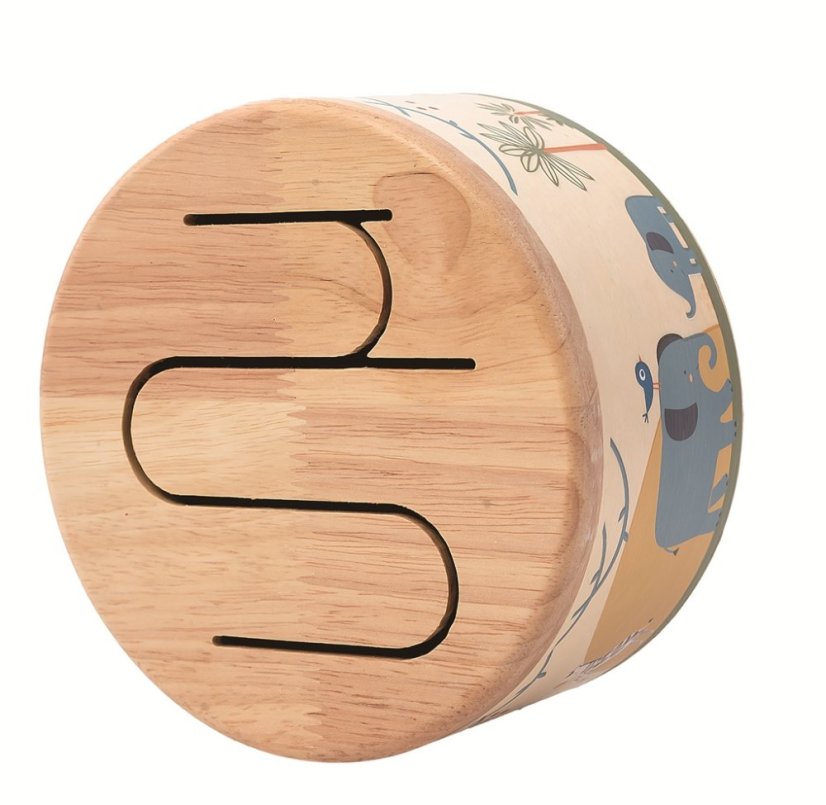 Veselý drevený bubienok s motívmi safari prináša deťom radosť z objavovania rytmu aj sveta zvieratiek. Na bubienku nájdete roztomilé ilustrácie slonov, žiráf a zebier, ktoré očarí každé malé dieťa. Bubienok je vyrobený z kvalitného prírodného dreva. Je dodávaný s jednou paličkou a má ideálnu veľkosť pre malé detské ruky. Podporuje rozvoj jemnej motoriky, rytmického cítenia a hudobného vnímania. Nejedná sa o hudobný nástroj, ale iba o hračku. Hlavné vlastnosti: bubienok s paličkoumotív Safaripodporuje rozvoj jemnej motoriky, rytmického cítenia a hudobného vnímaniavhodné pre deti od 18 mesiacov