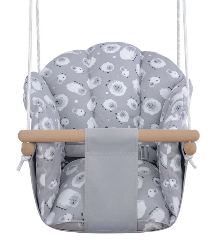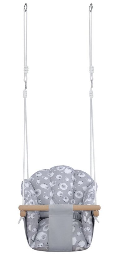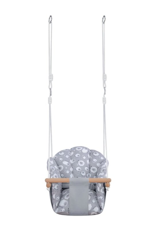 Komfort, bezpečie, zábava... každý predsa vie čo spokojné bábätká potrebujú! Táto detská hojdačka ponúka nielen množstvo hodín zábavy ale aj aktívny odpočinok. Konštrukcia z bukového dreva a sedátko zo 100% bavlny zaisťujú plné pohodlie a bezpečnosť pri hojdaní. Laná s 2 karabínami sú výškovo nastaviteľné (až 180 cm). Vďaka tlmeným farbám a jednoduchému dizajnu je hojdačka taktiež brilantným doplnkom do izbičky! Hlavné vlastnosti: nosnosť 60 kgvýškovo nastaviteľné lano (max. 180 cm)vyrobené zo 100% bavlnyroztomilý dizajn s ovečkamipovrazy zakončené bezpečnostnou poistkou