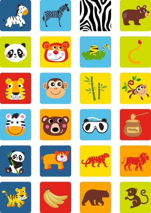 | Exotické zvieratká | leopard, zebra, panda, opička, tiger |