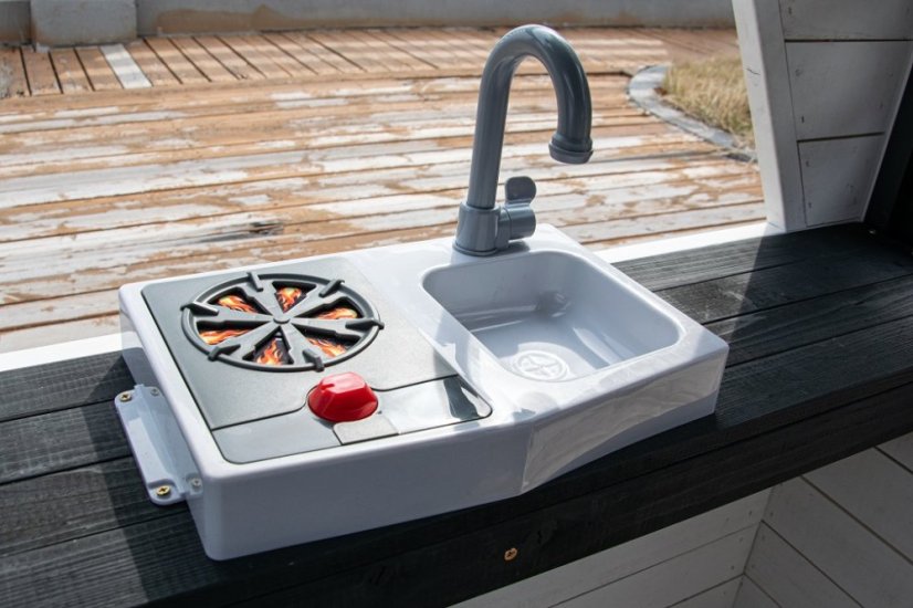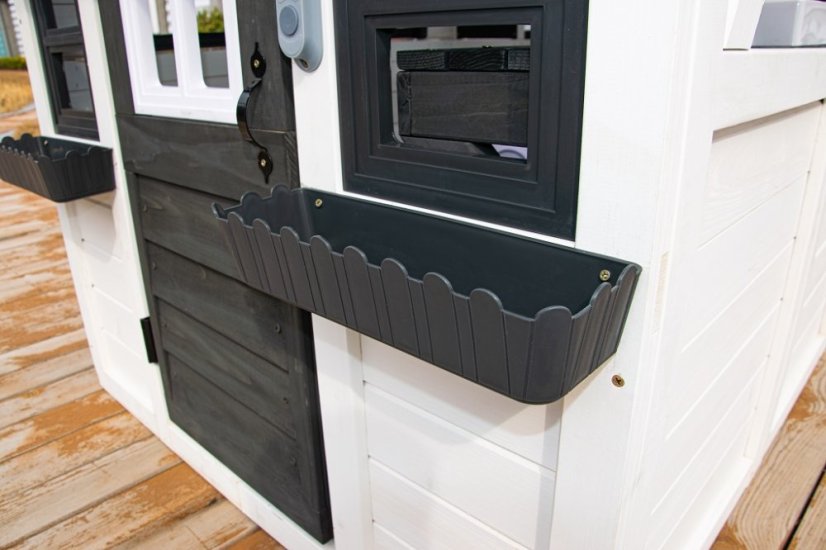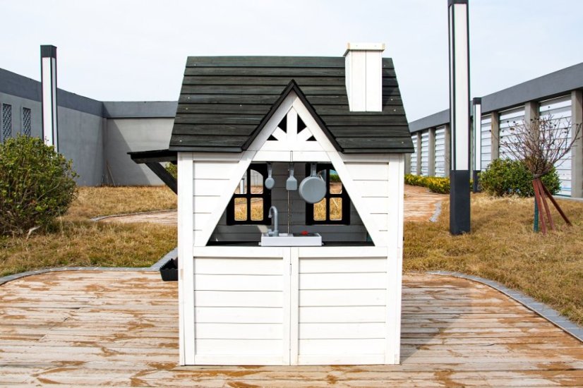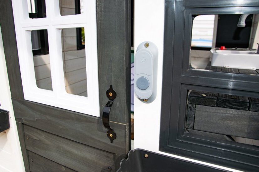 Kto by netúžil po svojom vlastnom bývaní! Doprajte svojim deťom pokojný kút, kde môžu odpočívať, mať súkromie a nerušene sa hrať. V tomto rozkošnom domčeku sa budú cítiť ako v rozprávke. Veľké bočné okno ponúka krásny výhľad do okolia a umožní premeniť domček na predajný stánok alebo obchod. V útulnej kuchynke, v ktorej nechýba varná doska s otočným červeným gombíkom, drez a základný riad, predvedú malí kuchári a kuchárky svoje kulinárske zručnosti a pripravia pre kamarátov alebo rodičov chutné menu. Ďalšími štýlovými doplnkami sú hodiny, hrantíky po stranách vstupných dverí, v ktorých sa budú krásne vynímať kvety, praktický vstup pre psíka, ktorý je prekrytý látkovým závesom s motívom psej búdy. Domček je vyrobený z dreva a opatrený náterom v prírodných farbách. Bude skvelým doplnkom a ozdobou každej záhrady alebo menšieho vonkajšieho priestoru. Tak na čo ešte čakáte? Zazvoňte na zvonček a poďte ďalej! Hlavné vlastnosti: funkčný zvonček, kuchynský kút s vybavením (varná doska, drez, panvica, 2 ks náčinia), hrantíky, vstup pre psíkarozvíja sociálne zručnostiútulný dizajnkvalitné a detailné prevedenievhodné pre hru viacerých detína napájanie slúžia 3 batérie LR44 (nie sú súčasťou balenia)dodávané v rozloženom stavenávod na zostavenie je súčasťou balenia