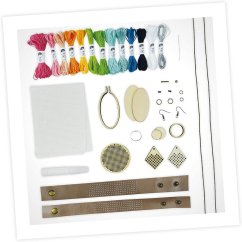 Súprava obsahuje postup a materiál (farebné bavlnky, ihlu, tkaninu, spojovacie komponenty) na výrobu šiestich módnych doplnkov – náramky, náhrdelník, náušnice, prívesky.