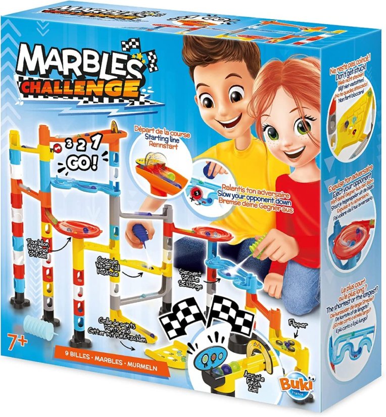 Táto guličkodráha je kompatibilná s dráhou "BUKI Guľôčková dráha MEGA s výťahom" (kód PM852) a "BUKI Závodná guličková dráha" (kód PM854), ktoré tiež nájdete v našej ponuke. Spojením oboch guličkodráh získate takmer neobmedzené možnosti a mnoho ďalších akrobatických prvkov.