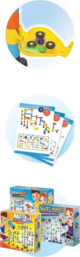 Obrázkový návod obsahuje rôzne náročné varianty guličkodráhy a ďalšie môžete vytvoriť prepojením viacerých stavebníc alebo vďaka vlastnej fantázii.