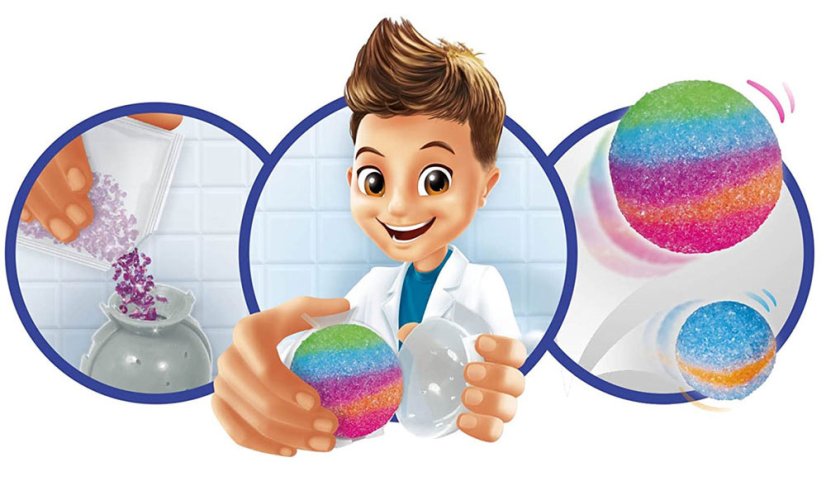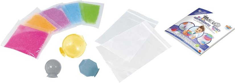 Sada na výrobu obľúbených skákavých guličiek. Sami si zvolíte farbu, tvar a veľkosť a vyrobíte si niekoľko guličiek pre zábavu s kamarátmi. Môžete zvoliť jednu zo 4 farieb, namiešať viacfarebnú zmes alebo dokonca v tme svietiace farbu. Súprava umožňuje urobiť 6 pokusov, ktoré deti zábavnou formou zoznámia s princípom výroby a vlastnosťami gumových guličiek.