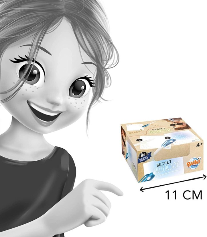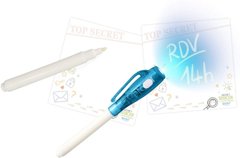 Poznámkový bloček obsahuje celkom 300 listov o veľkosti 11x11cm. Pomocou priloženej fixy napíš neviditeľný tajný odkaz a pomocou UV svetla na veku fixy si ho prečítaj.