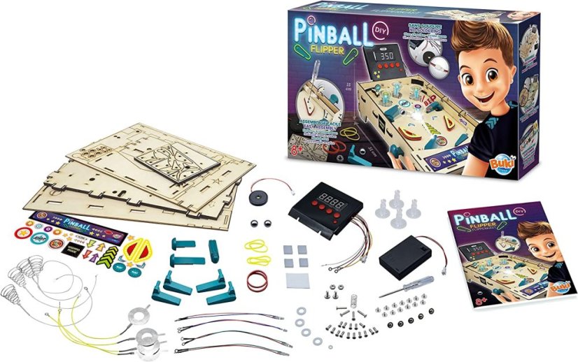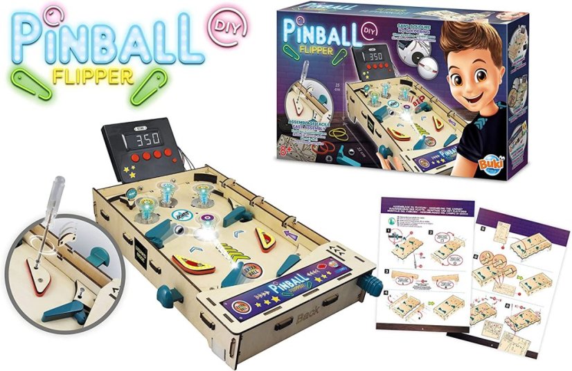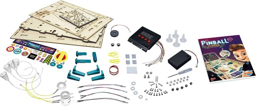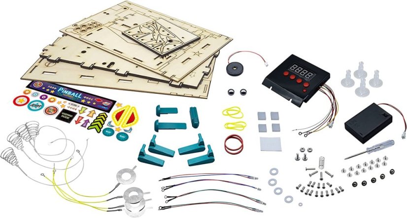 Súčasťou sady sú nespájkované konektory, ku ktorým jednoducho pripojíte elektronické prvky, svetelné diódy aj výsledkovú tabuľu. Priložené nálepky umožňujú prispôsobiť si Pinball podľa vašich predstáv. Po zložení sa môžete hrať s kamarátmi alebo prekonávať svoje vlastné rekordy. Elektronická tabuľa vydáva zvuky pri každom dotyku s elektronickými prvkami a počíta body hráčov.