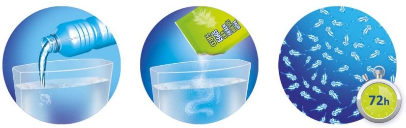 Sú to mierumilovní tvorovia, ktorí spolu nikdy nebojujú. Potrebujú iba základnú pravidelnú starostlivosť. Začnú sa liahnuť už za 2-3 dni po vhodení vajíčok do vody, voľným okom ich možno vidieť od tretieho dňa a následne rastú takmer pred očami. V prvých dňoch dokážu zdvojnásobiť svoju veľkosť počas 24hod. Udržuj správnu teplotu vody, nechaj akvárium na svetlom mieste, ale nie priamo na slnku. Dorastú do veľkosti okolo 2cm a dĺžka ich života môže v prírode dosiahnuť až 6 mesiacov (v podmienkach tohto akvária rádovo niekoľko týždňov).