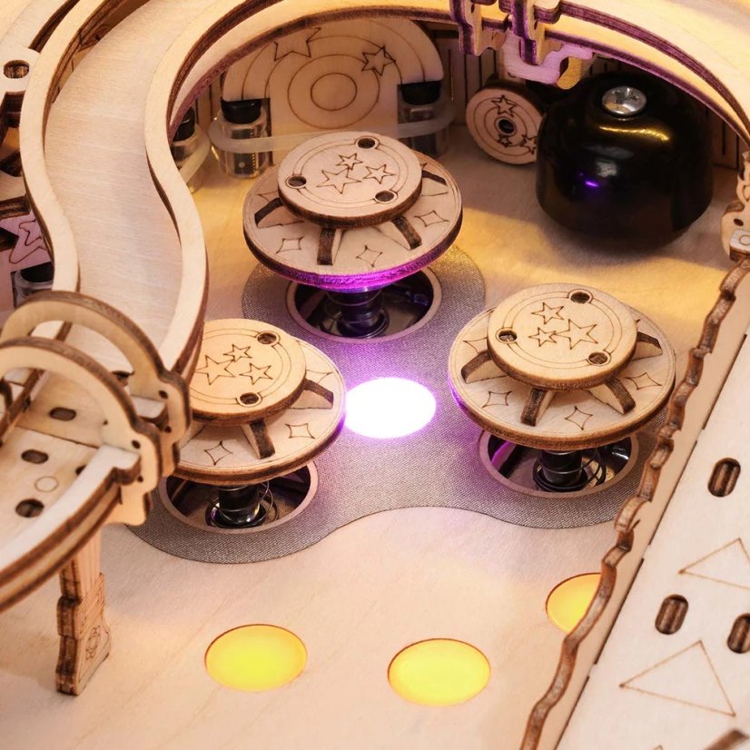 Ak ste fanúšikom klasického pinballu, potom si určite prácu na tejto skladačke užijete. Ide o pinballový automat v štýle vintage, ktorý vás vráti do starých dobrých 90. rokov. Použité motívy akrobatických a kúzelníckych vystúpení Vás zavedú do cirkusovej manéže. Už len samotné skladanie bude zábavné, a čo potom až sa pochválite priateľom či rodine a zídete sa pri hraní tejto hry so všetkými zvukovými a svetelnými efektmi a elektronickým zaznamenaním skóre. Odpáľte guľôčku a sledujte, ktorý cieľ zasiahnete a koľko bodov získate. Na dosiahnutie čo najvyššieho počtu bodov upravte rýchlosť a smer odpalu guličky.Táto skladačka je nielen zábavný a kreatívny projekt, ale aj skvelý spôsob, ako stráviť čas s rodinou a priateľmi. Jeho unikátny retro cirkusový dizajn dodáva pinballovej hre nostalgickú príťažlivosť. Je vhodná pre všetky kreatívne založené osoby staršie ako 14 rokov. Všetky presné dieliky do seba ľahko zapadnú, aby výsledok bol stabilný a odolný, a to bez použitia lepidla. Skladačka je dodávaná v nezloženom stave, zabalená v škatuli s detailným návodom na zostavenie. Hlavné vlastnosti: 482 precízne vyrezávaných dielovzostavenie bez použitia lepidladoba zostavenia cca 12 hodínLED farebné svetelné efektyzvukové efektyregulácia rýchlosti a uhla odpaluvysoká obtiažnosť zostavenímnapájanie pomocou USB káblavhodné od 14 rokov